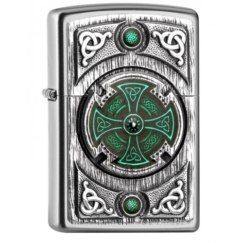 Zippo benzinski upaljač Model: Celtic green cross Proizvođač: Zippo, 33 Barbour street, Bradford PA, 16701 Uvoznik: Obrt za trgovinu Happy, Borelli 4, 23000 Zadar